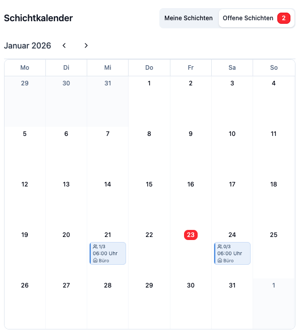 Jede offene Schicht zeigt den aktuellen Besetzungsstand: