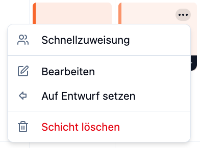 - Klicke auf die Schicht → Dropdown → Schnellzuweisung